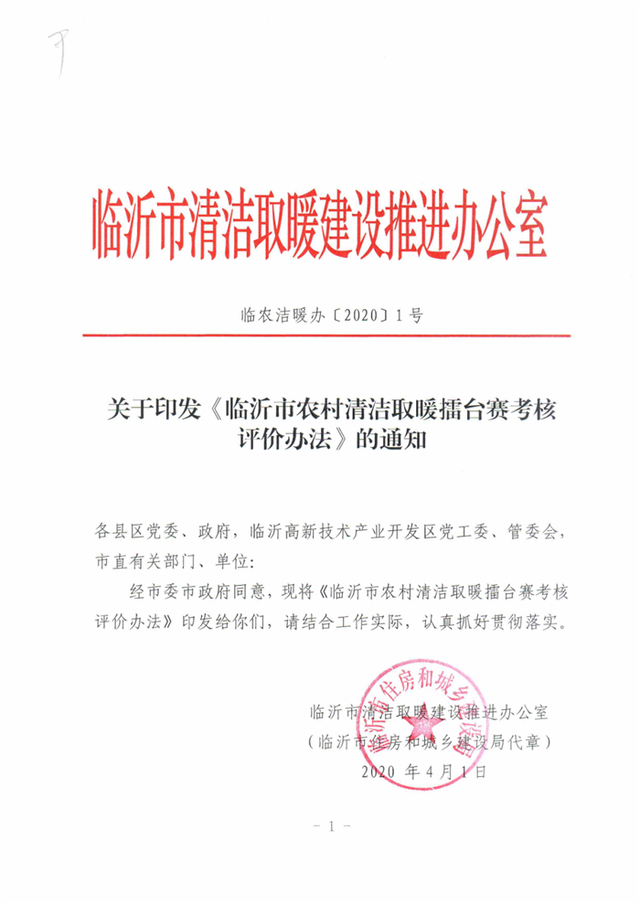 北極星售電網(wǎng)訊:為確保按期完成2020年清潔取暖目標(biāo)任務(wù),臨沂市于4月印發(fā)《臨沂市農(nóng)村清潔取暖擂臺(tái)賽考核評(píng)價(jià)辦法》,確保2020年10月底前完成完成農(nóng)村清潔取暖年度任務(wù)。