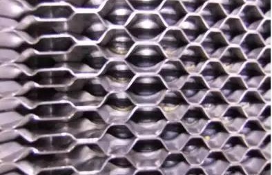 換熱板片表面壓制成波紋型或槽型,以增加板的剛度,增大流體的湍流程度,提高傳熱效率。其材質(zhì)一般為:不銹鋼、銅、鋁、鋁合金鈦、鎳等。板角處的角孔起著連接通道的作用。