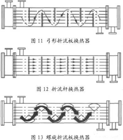 (1)橫流式支撐,如傳統(tǒng)的弓形折流板,使殼程流體呈橫向流動;