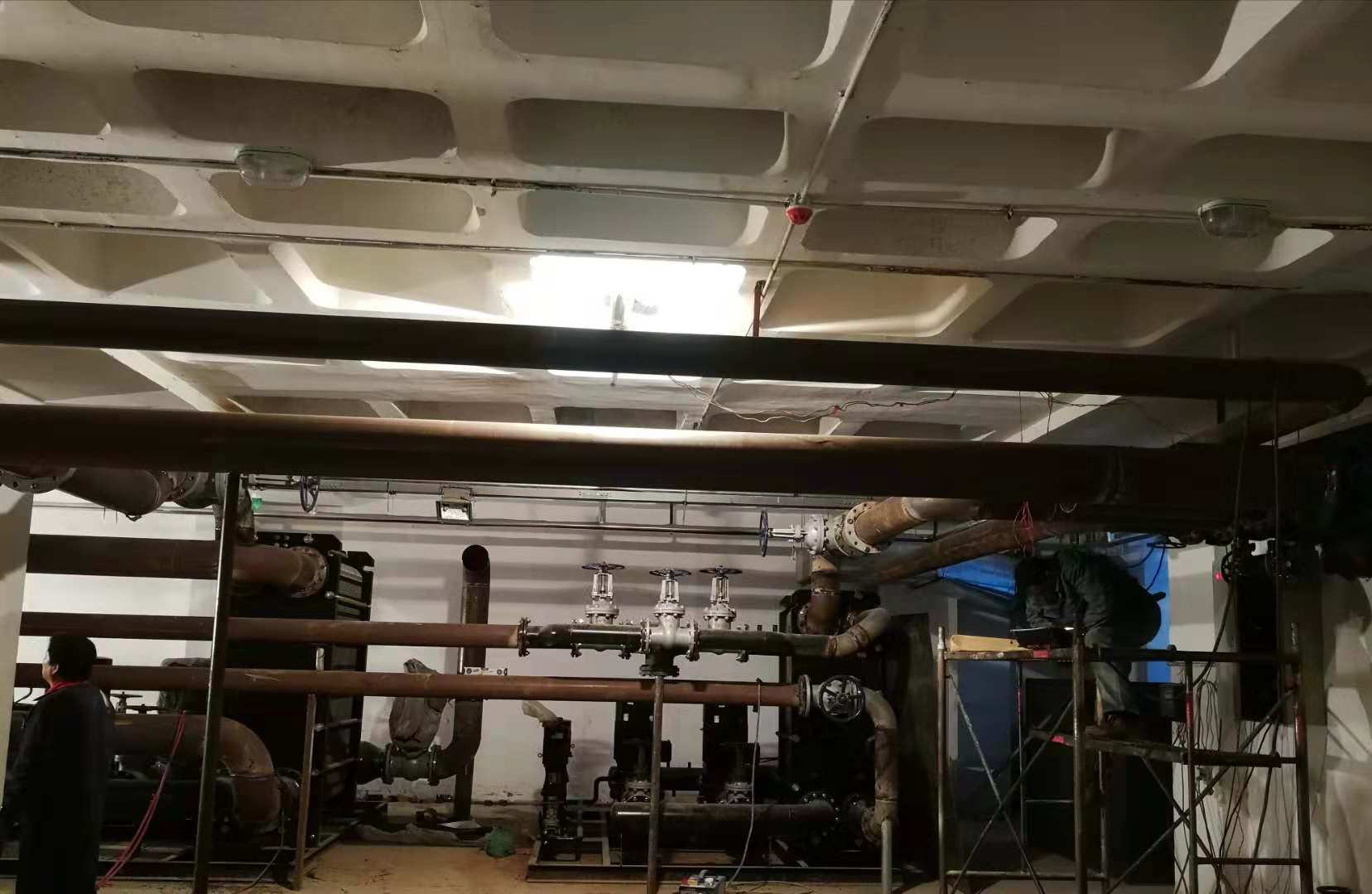 11月8日齊信機電為鄒平黛溪灣小區(qū)提供的高低區(qū)智能板式換熱機組發(fā)貨到現場,同時派出專業(yè)施工人員到現場進行設備和管道安裝施工。