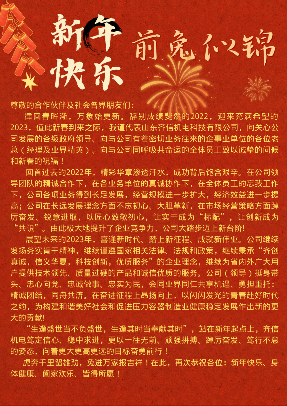 山東齊信2023年新春賀詞